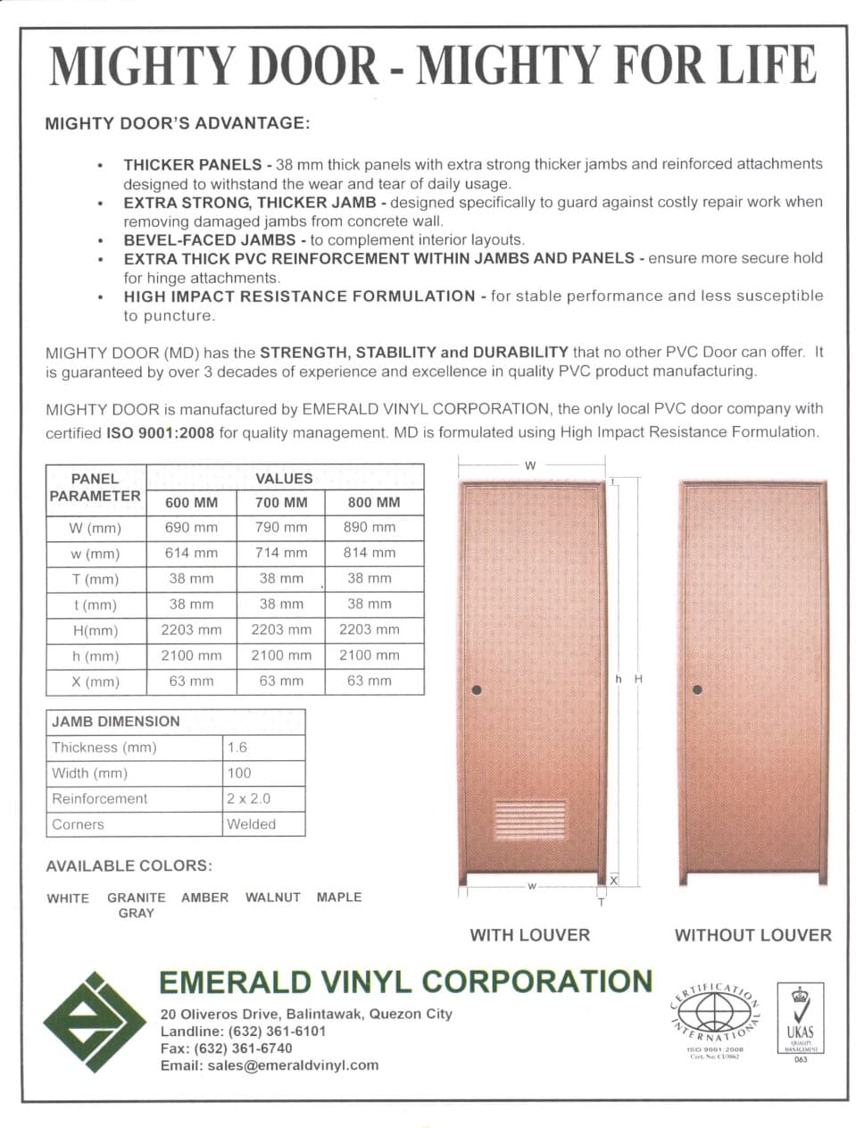 MIGHTY DOOR has the strength, stability and durability that no other PVC Door can offer